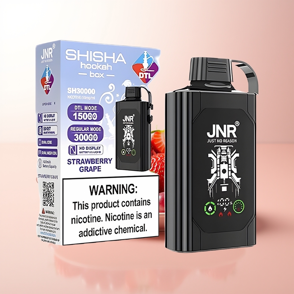 JNR Shisha Hookah Box 20500 Morango Uva – HD Display, Carga Rápida Type-C, Dual Mesh Coil & Dual Core