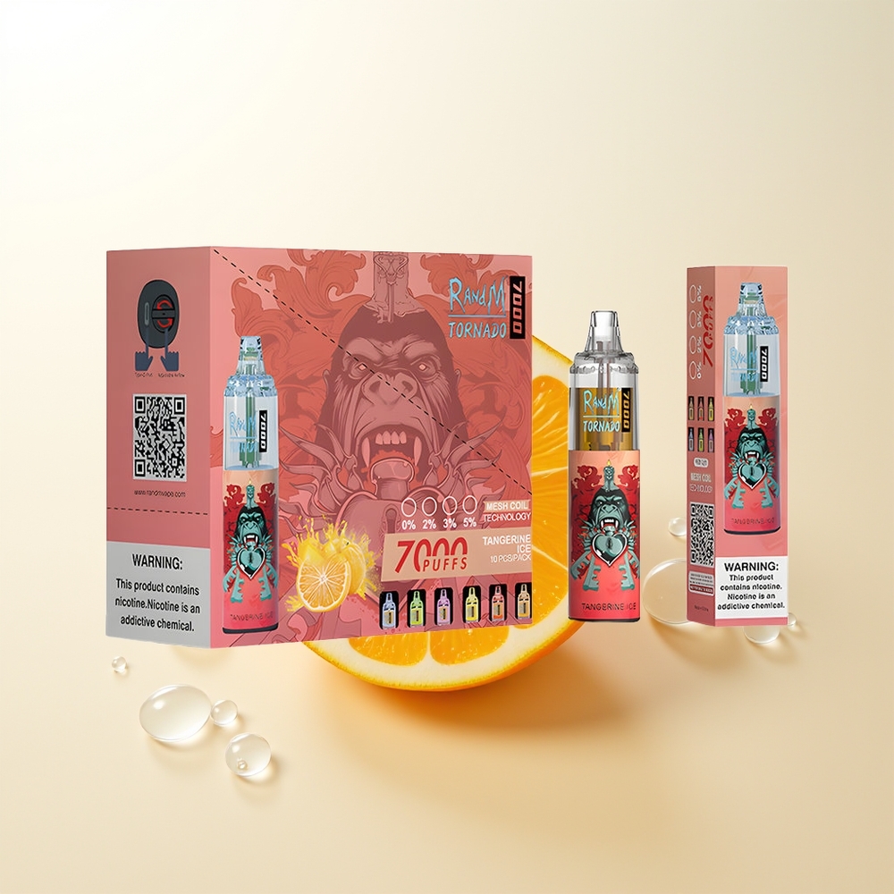 RandM Fumot Tornado 7000 Gelo de Tangerina com Bateria 850 MAH e Bobina Mesh