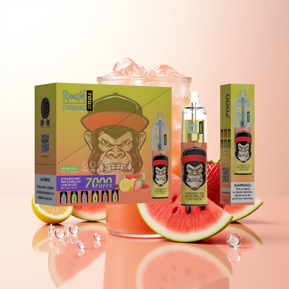 RandM Fumot Tornado 7000 Morango Melancia Limonada com Bateria 850 MAH e Luz RGB