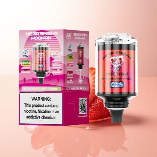 JNR Mega Shisha Hookah 100K Soco de Morango com Bateria Recarregável 2200mAh e Resistência de Nicotina 2%