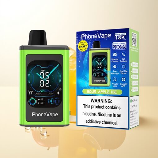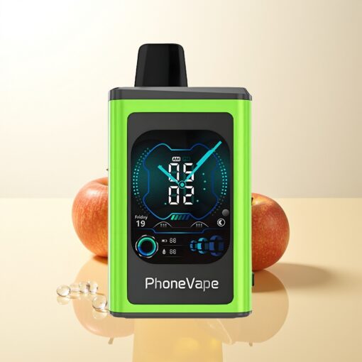 JNR PhoneVape 30000 Maçã Verde Gelada com Bateria Recarregável 850mAh e Força de Nicotina 2%,5%