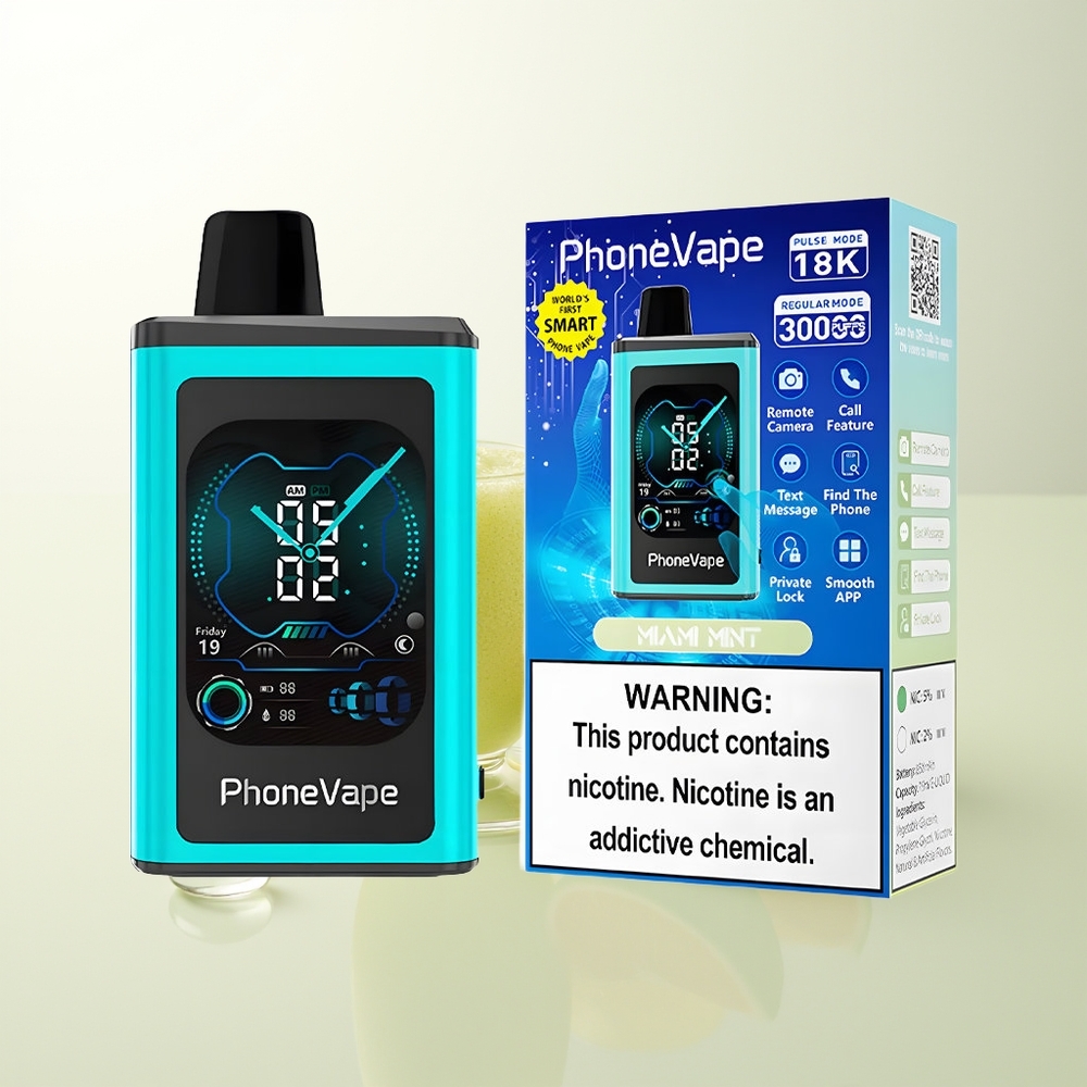 JNR PhoneVape 30000 Miami Mint – Menta de Miami com Bateria Recarregável 850mAh e Tela de Exibição Completa