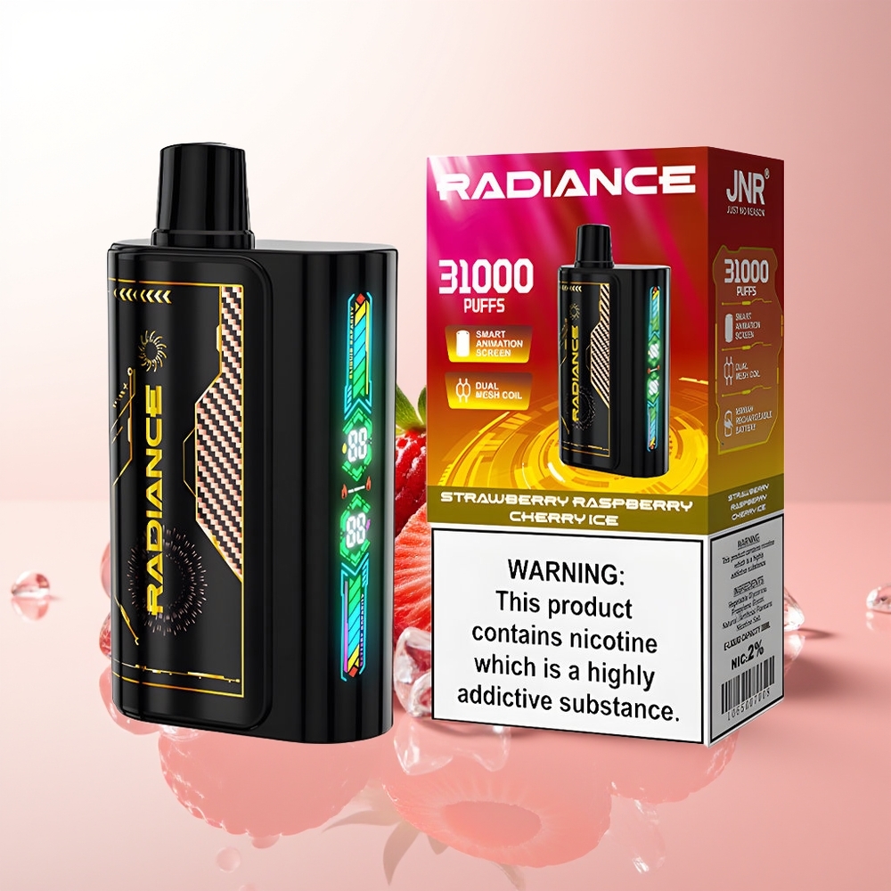 JNR Radiance 31000 Morango Framboesa Cereja Gelo com Tela Animada Inteligente e Bateria Recarregável 950 mAh