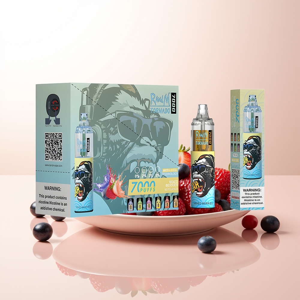 RandM Fumot Tornado 7000 Mirtilos Misturados com 14 ML de E-líquido e Bobina Mesh