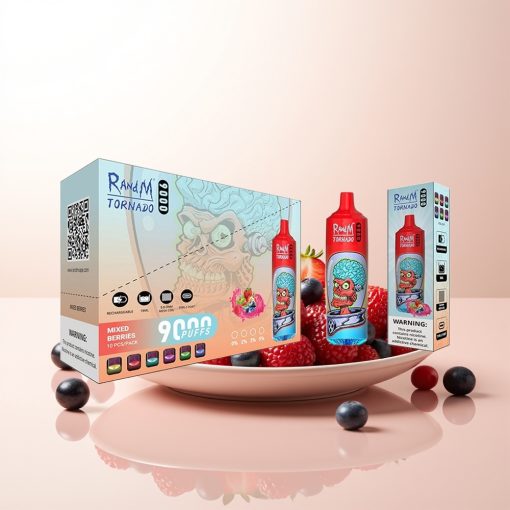RandM Fumot Tornado 9000 Frutas Vermelhas Misturadas com 18 mL e Display RGB Elegante