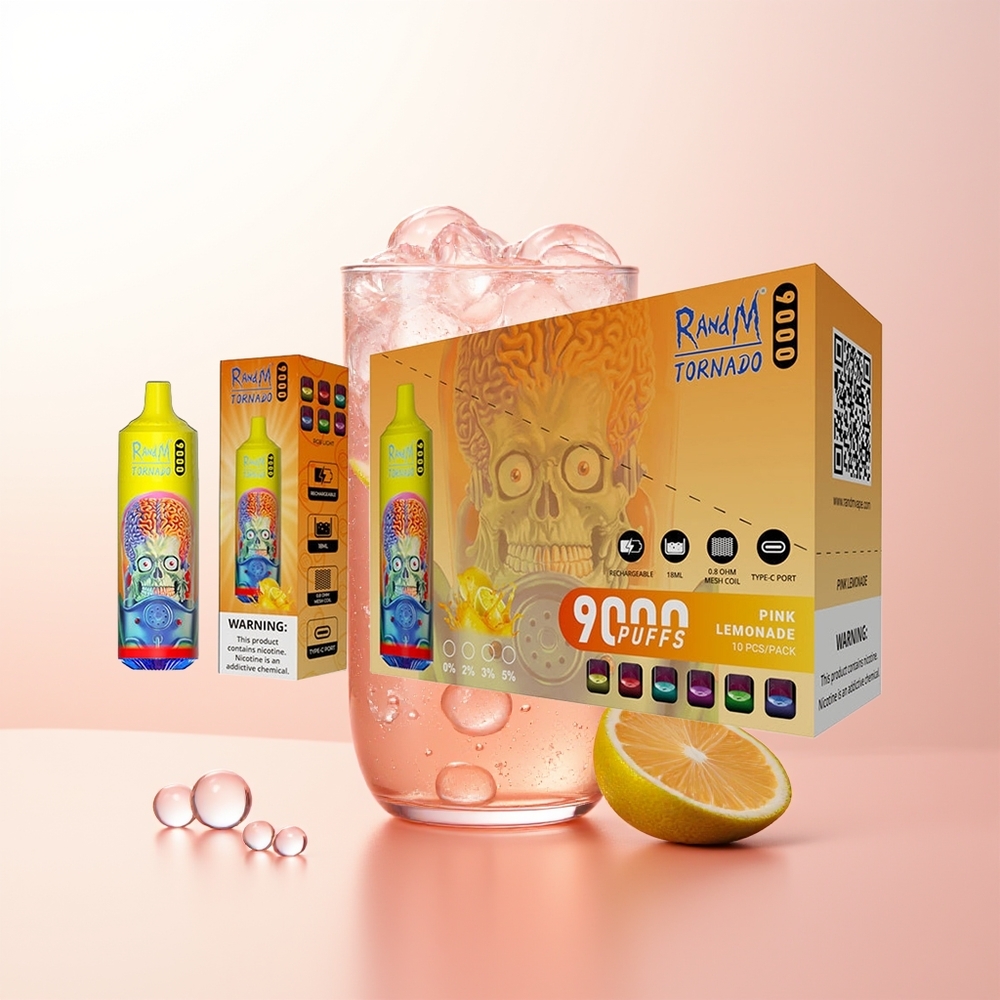 RandM Fumot Tornado 9000 Limão Rosa Tornado 9000 Puffs 18 mL Tela RGB Elegante