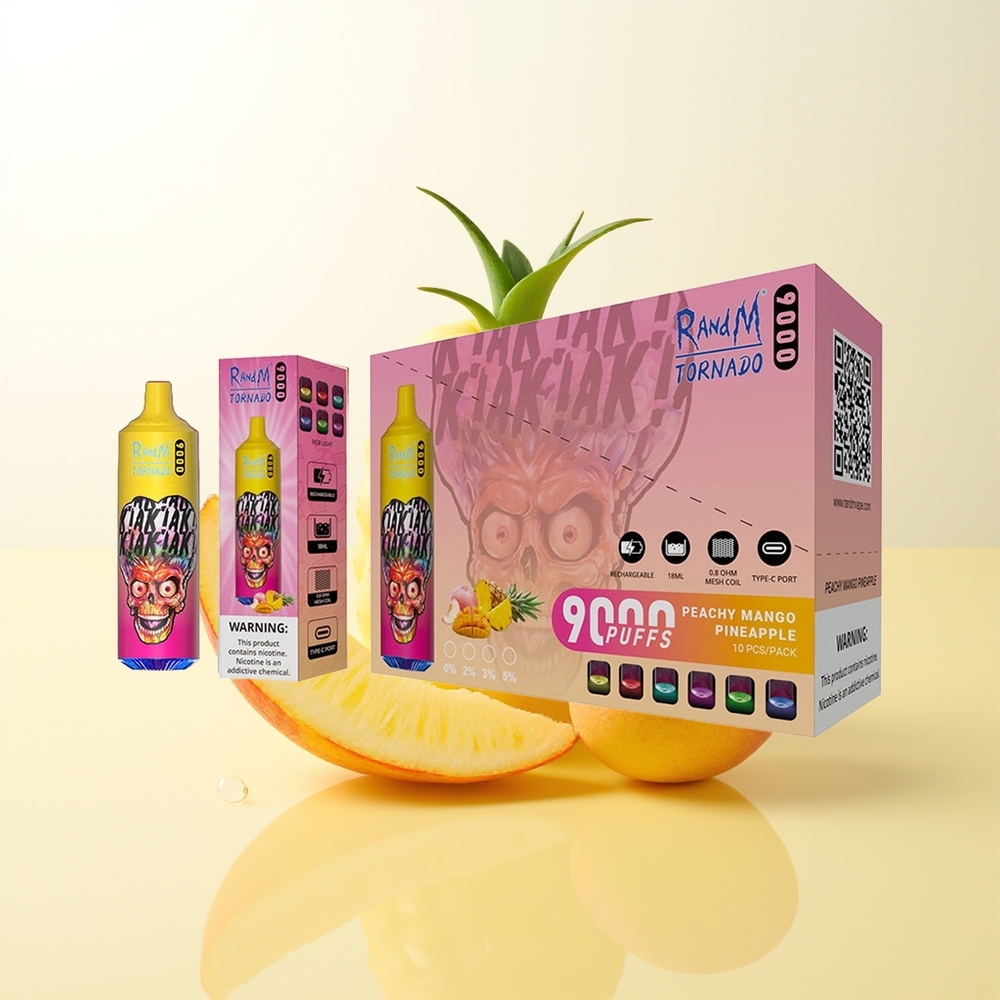 RandM Fumot Tornado 9000 Pêssego Manga Abacaxi com 18 mL e Bobina Mesh