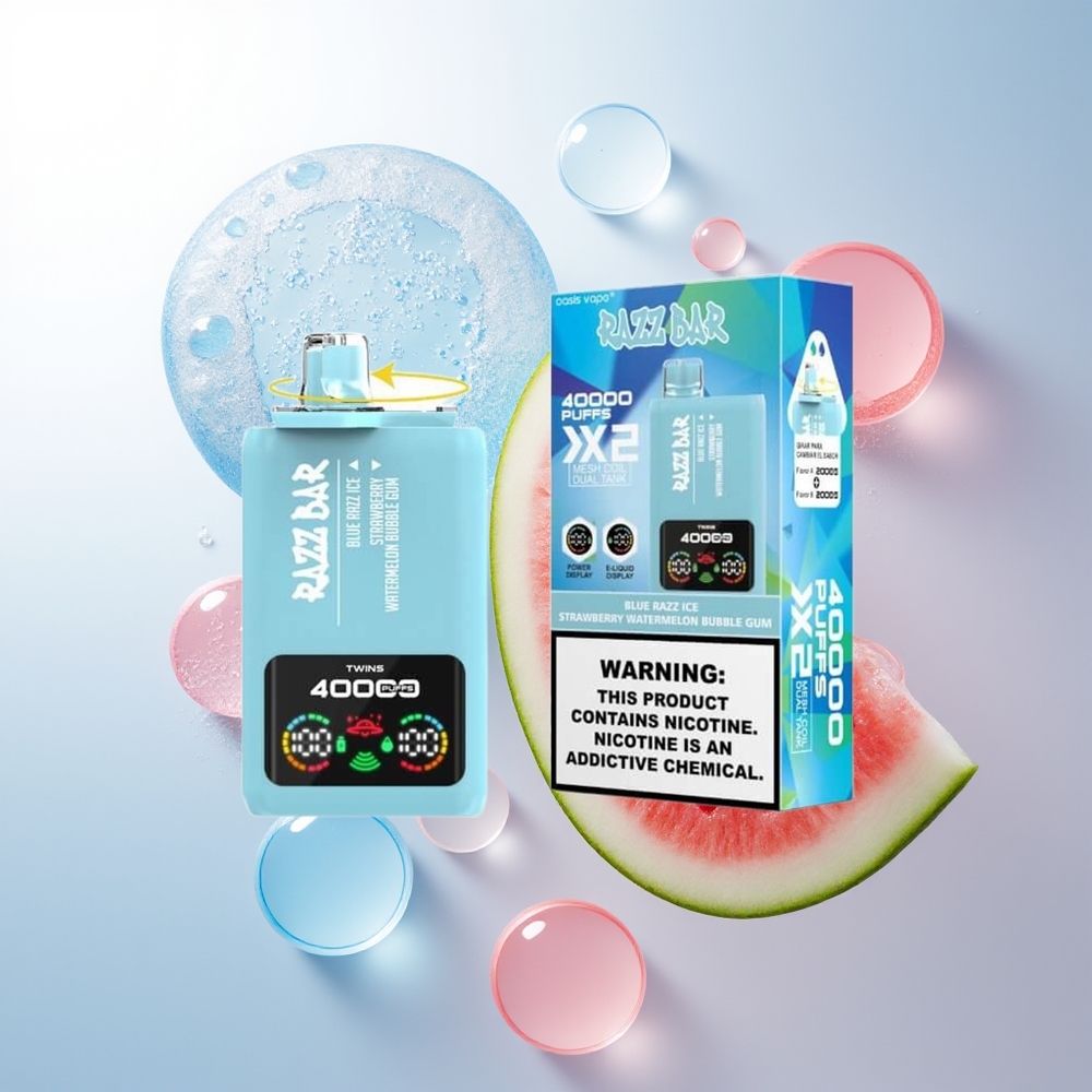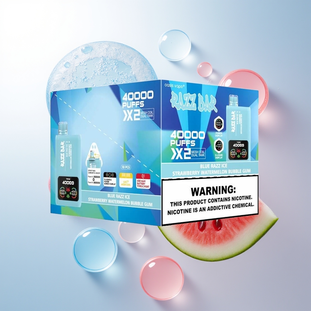 Razz Bar 40000 Mirtilo Azul Gelo-Morango Melancia Chiclete com Tela de Potência e Bobina Mesh 1.0Ohm 2