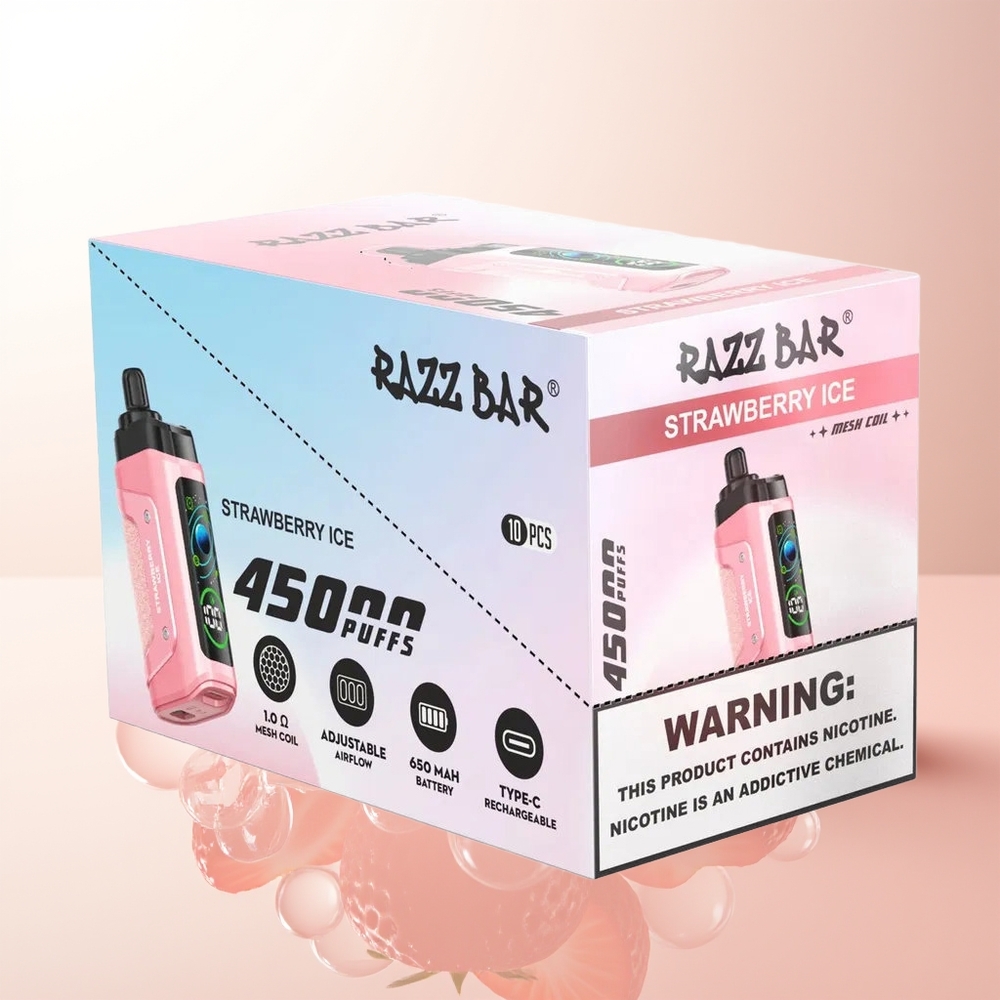 Razz Bar 45000 Morango Gelado – Bobina Mesh 1.0 Ohm – Resistência de Nicotina 20 mg/ml